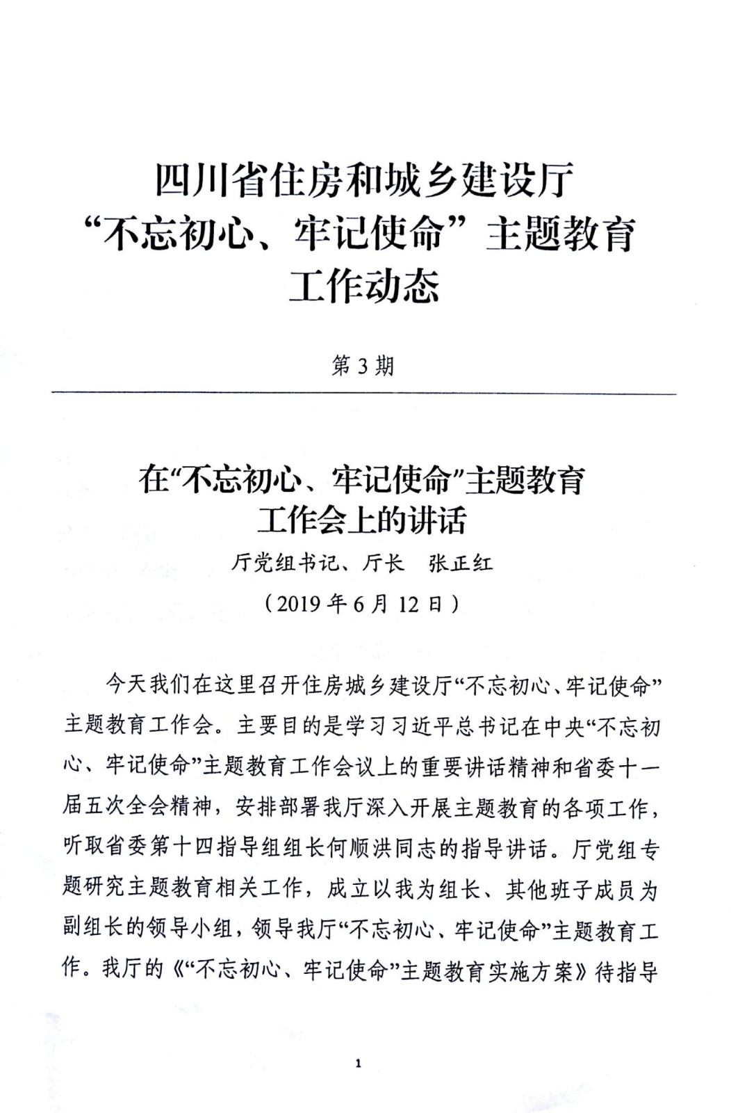 四川省住房和城乡建设厅党组书记、厅长张正红在“不忘初心、牢记使命”主题教育工作会上的讲话精神