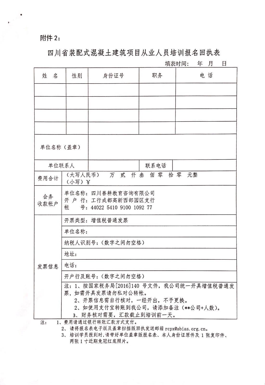 四川省装配式混凝土建筑项目从业人员培训报名回执表.docx