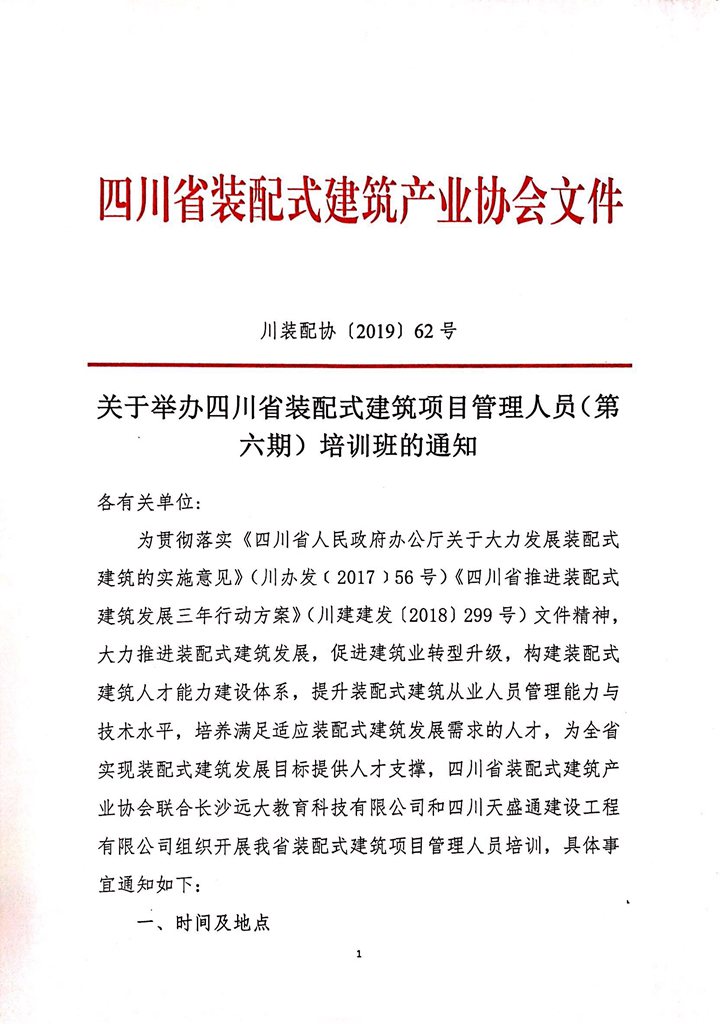 通知 | 关于举办四川省装配式建筑项目管理人员(第六期)培训班通知