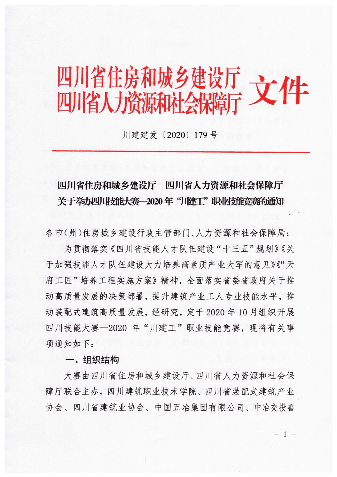 转发 | 四川省住建厅、四川省人社厅关于举办四川技能大赛——2020年“川建工”职业技能竞赛的通知
