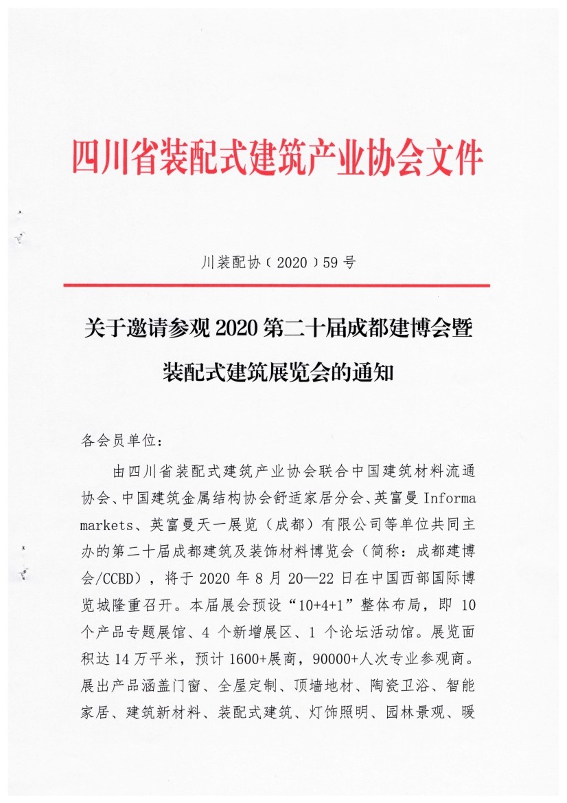 关于邀请参观2020第二十届成都建博会暨装配式建筑展览会的通知