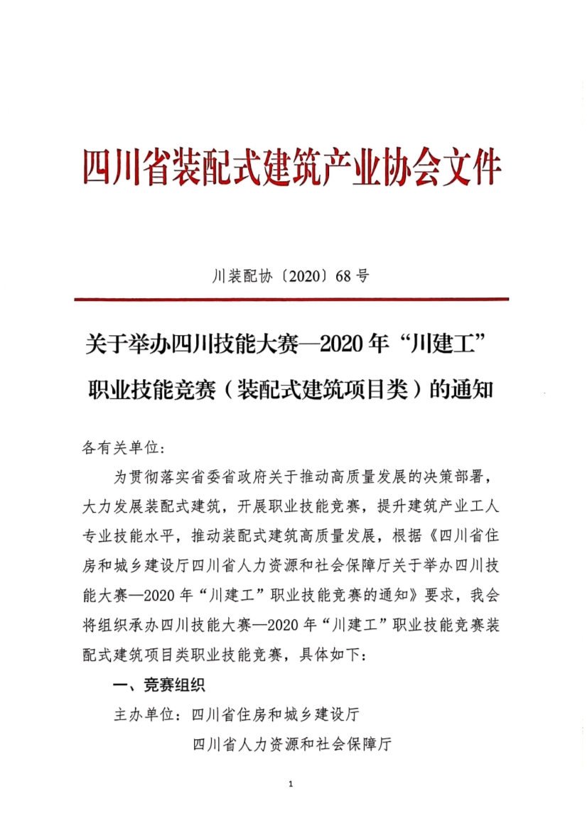 关于举办四川技能大赛—2020年“川建工”职业技能竞赛(装配式建筑项目类)的通知.pdf