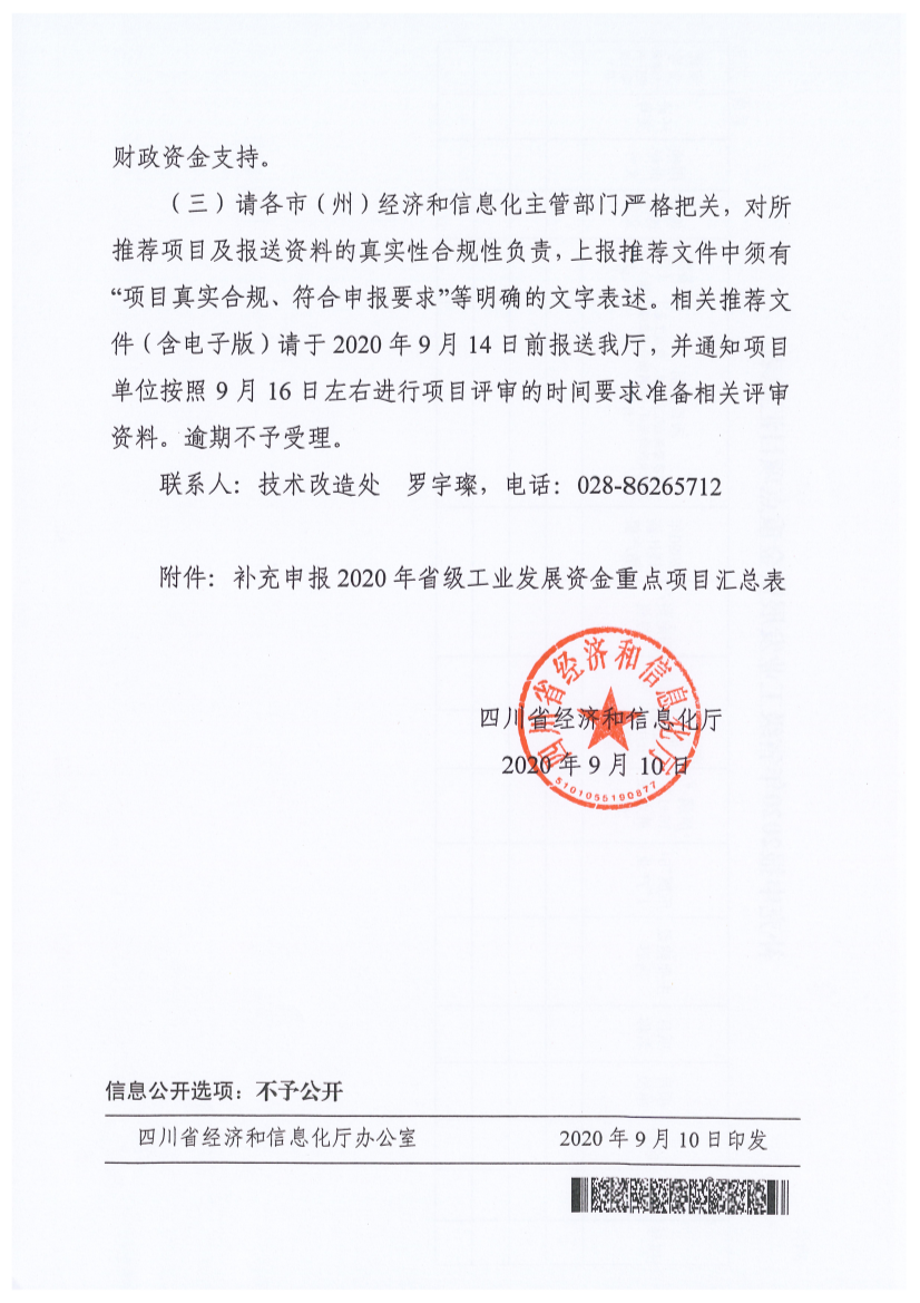 转发 | 四川省经济和信息化厅关于补充征集2020年省级工业发展资金重点项目的通知