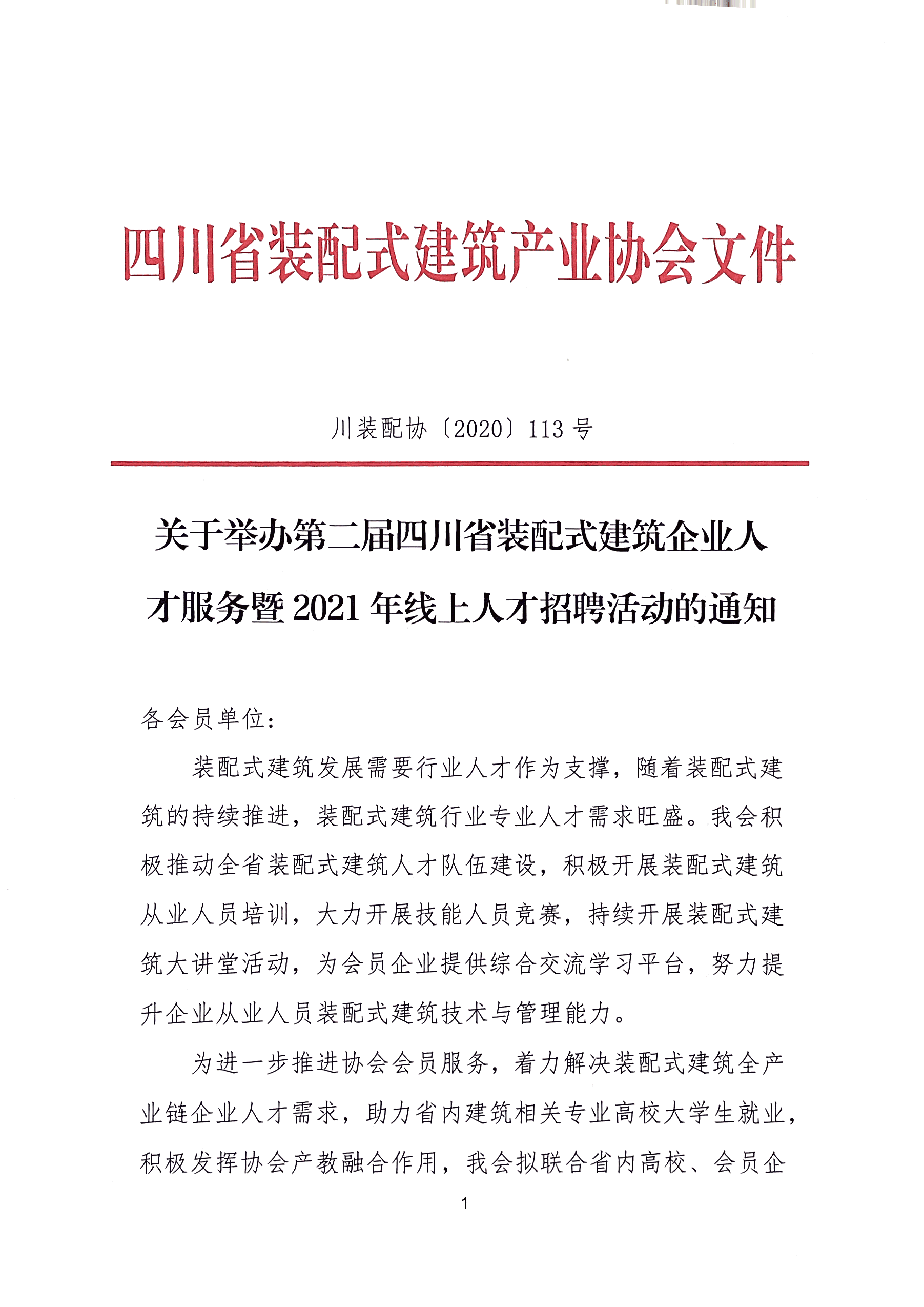 关于举办第二届四川省装配式建筑企业人才服务暨2021年线上人才招聘活动的通知.pdf