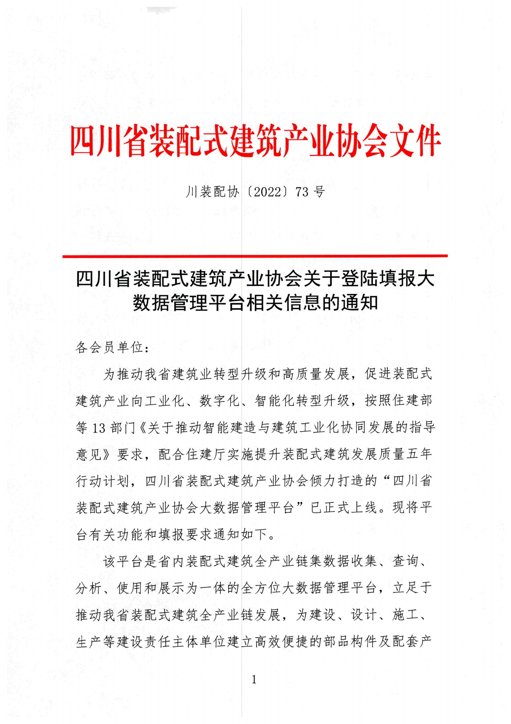 通知丨四川省装配式建筑产业协会关于登陆填报大数据管理平台相关信息的通知