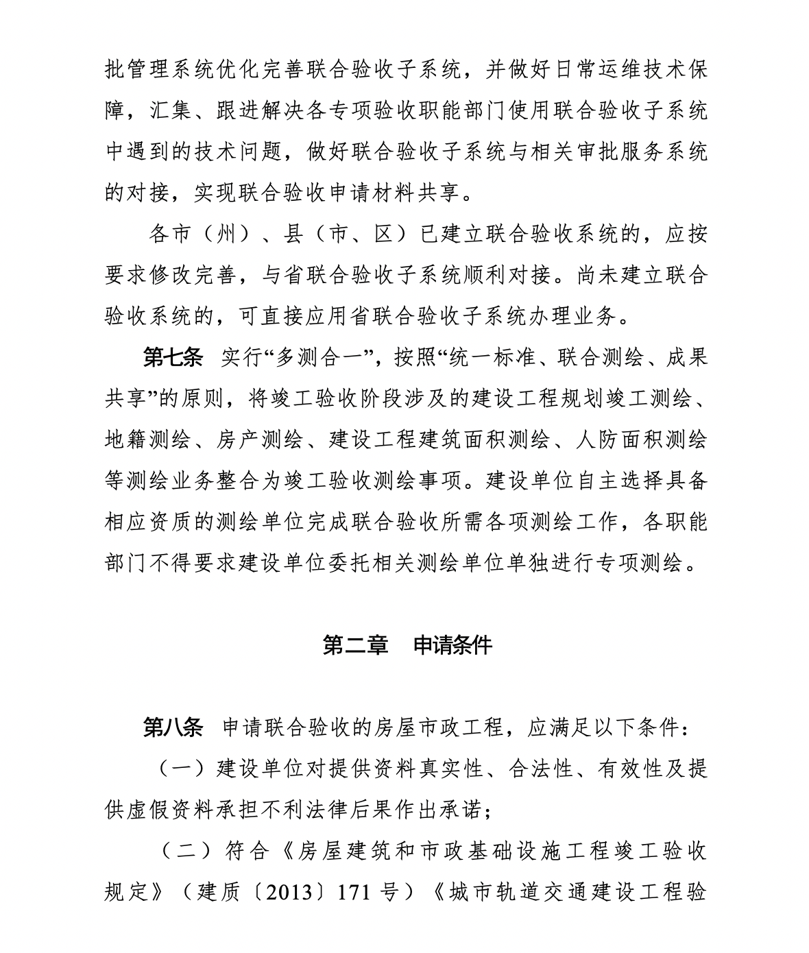 为进一步规范我省房屋建筑和市政基础设施工程项目联合验收工作,明确工作职责,优化验收程序、加强统筹协同、提高验收效能。