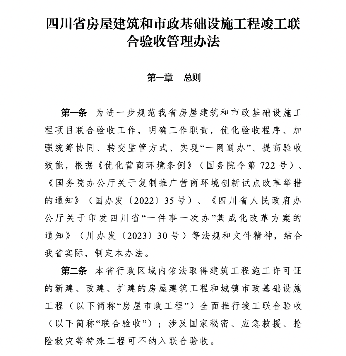 转发|6月19日起施行!《四川省房屋建筑和市政基础设施工程竣工联合验收管理办法》印发