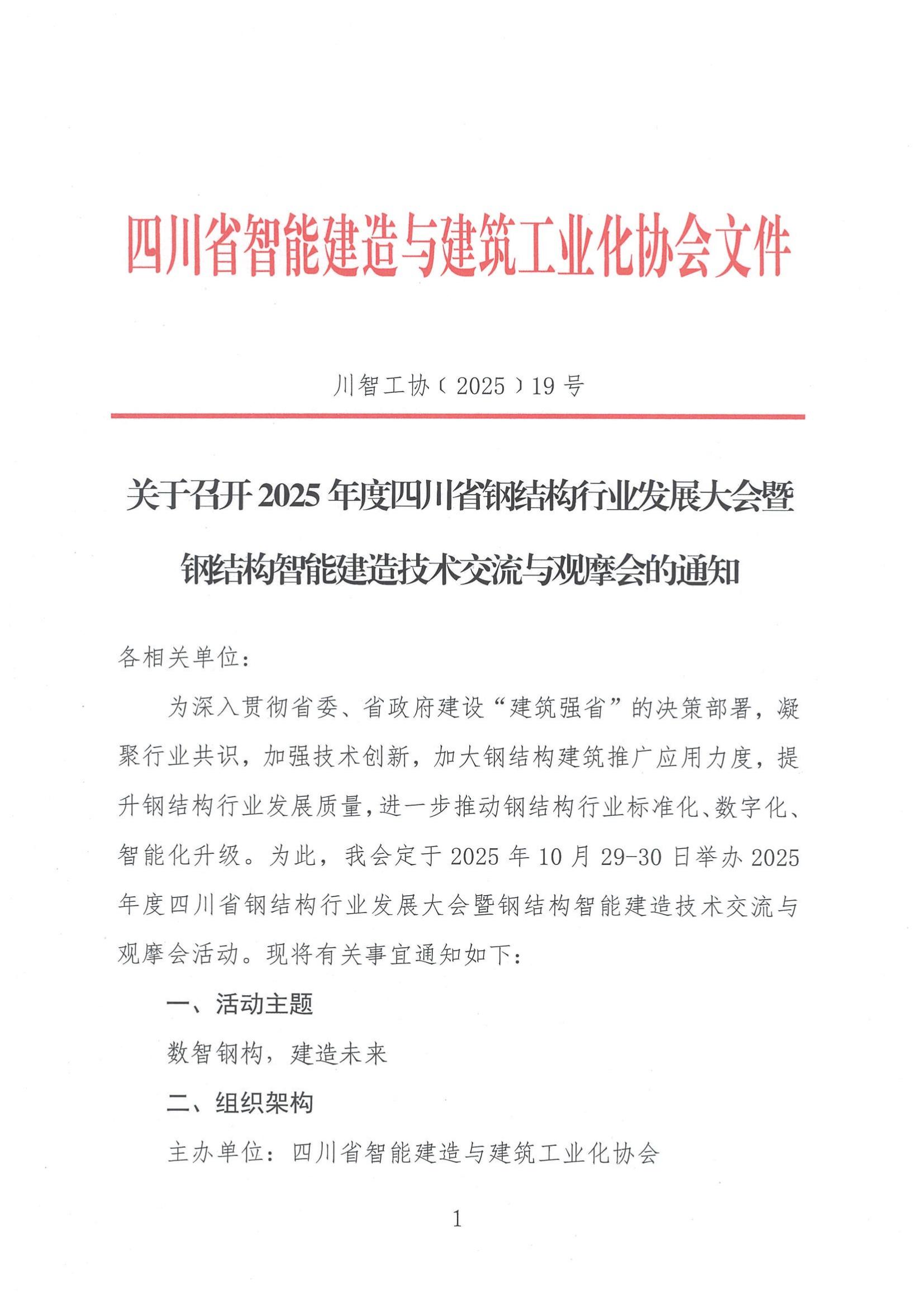 关于召开2025年度四川省钢结构行业发展大会暨钢结构智能建造技术交流与观摩会的通知