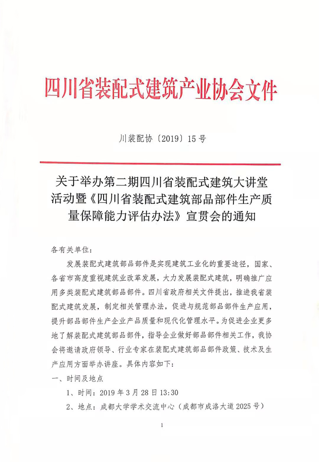 关于举办第二期四川省装配式建筑大讲堂活动暨《四川省装配式建筑部品部件生产质量保障能力评估办法》宣贯会的通知