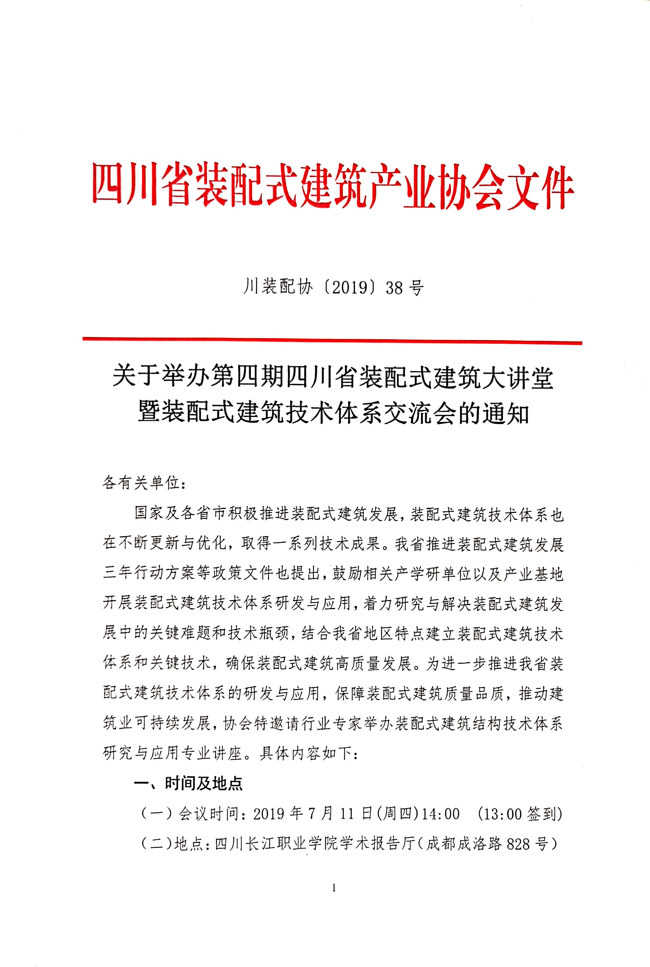 关于举办第四期四川省装配式建筑大讲堂暨装配式建筑技术体系交流会的通知