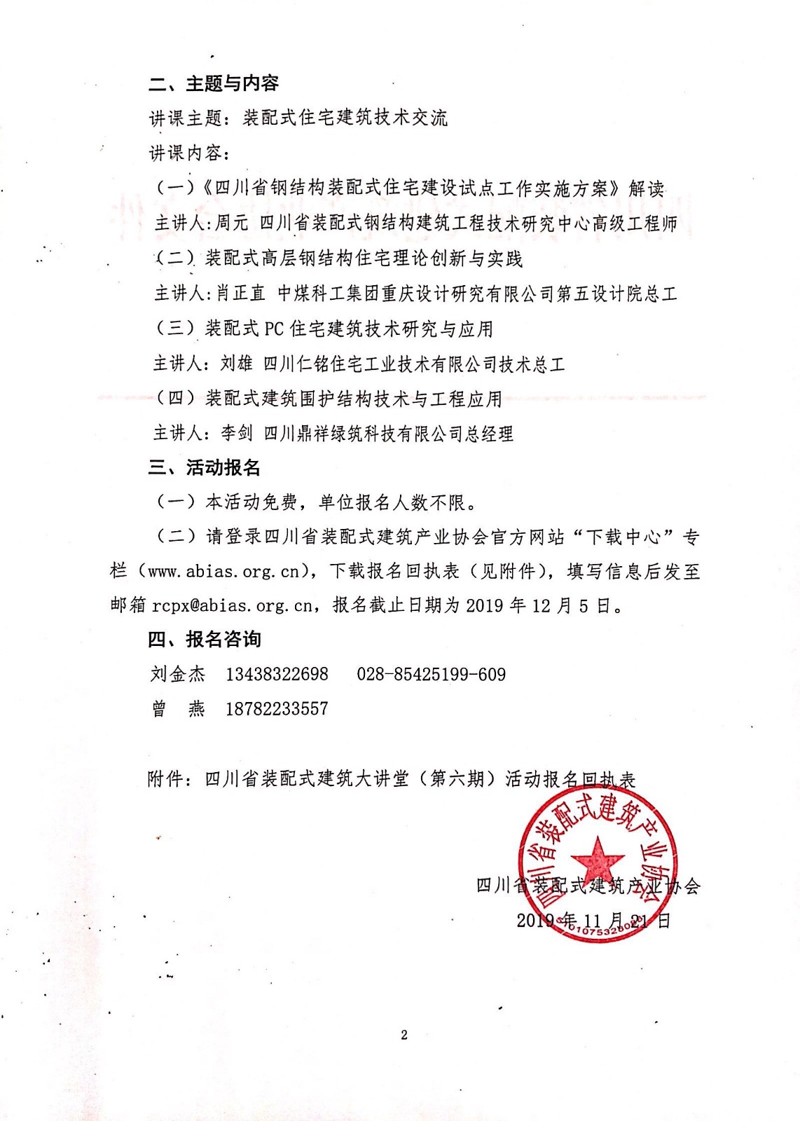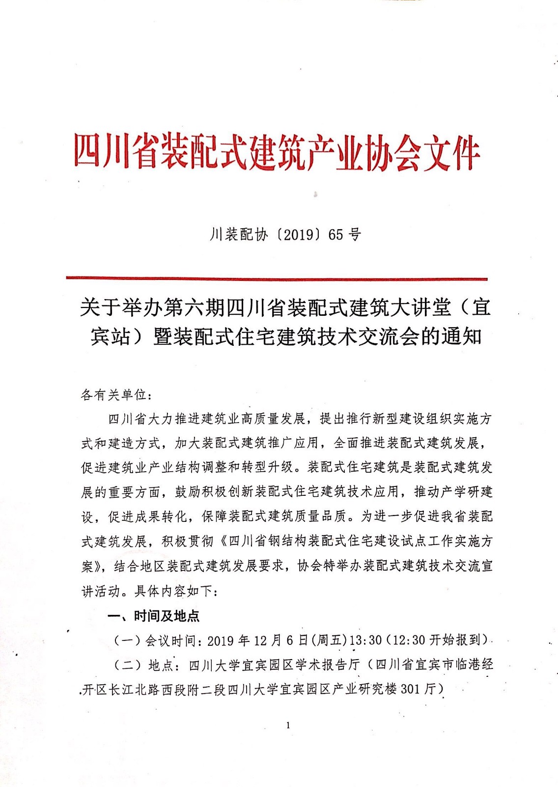 关于举办第六期四川省装配式建筑大讲堂(宜宾站)暨装配式住宅建筑技术交流会的通知