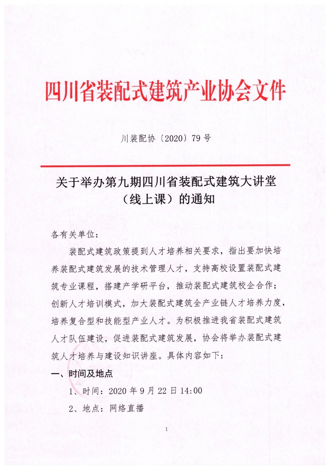 关于举办第九期四川省装配式建筑大讲堂的通知(线上课)