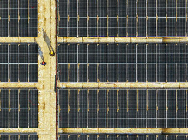 2023年12月19日,在宜宾高新区和光同程光伏科技有限公司,技术人员在查看维护光伏板。目前,光伏产业已成为拉动宜宾工业经济增长的新引擎。