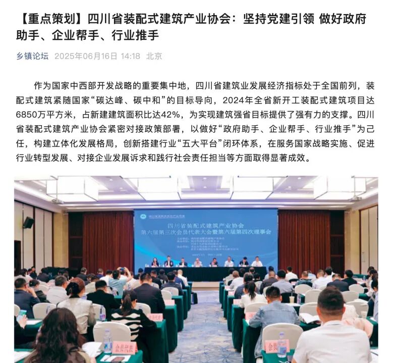 近日,中央社工部直属刊物《乡镇论坛》发布文章《【重点策划】四川省装配式建筑产业协会:坚持党建引领 做好政府助手、企业帮手、行业推手》,宣传协会工作。