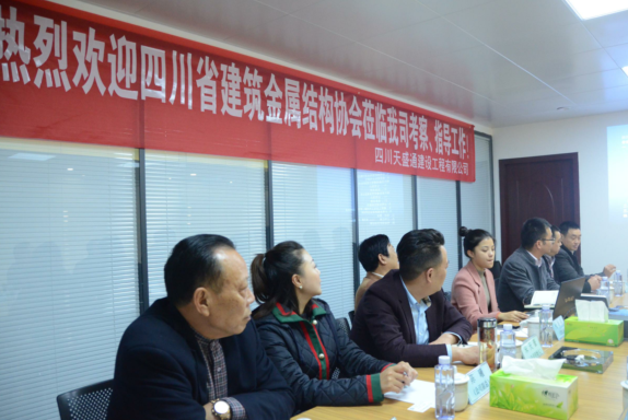 2017年12月8日下午,四川省建筑金属结构协会会长蒙昌嘉、副秘书长周元、专业委员会管理办公室主任向勇及协会相关工作人员,对四川宏达杭萧钢构建设有限公司进行了考察调研。