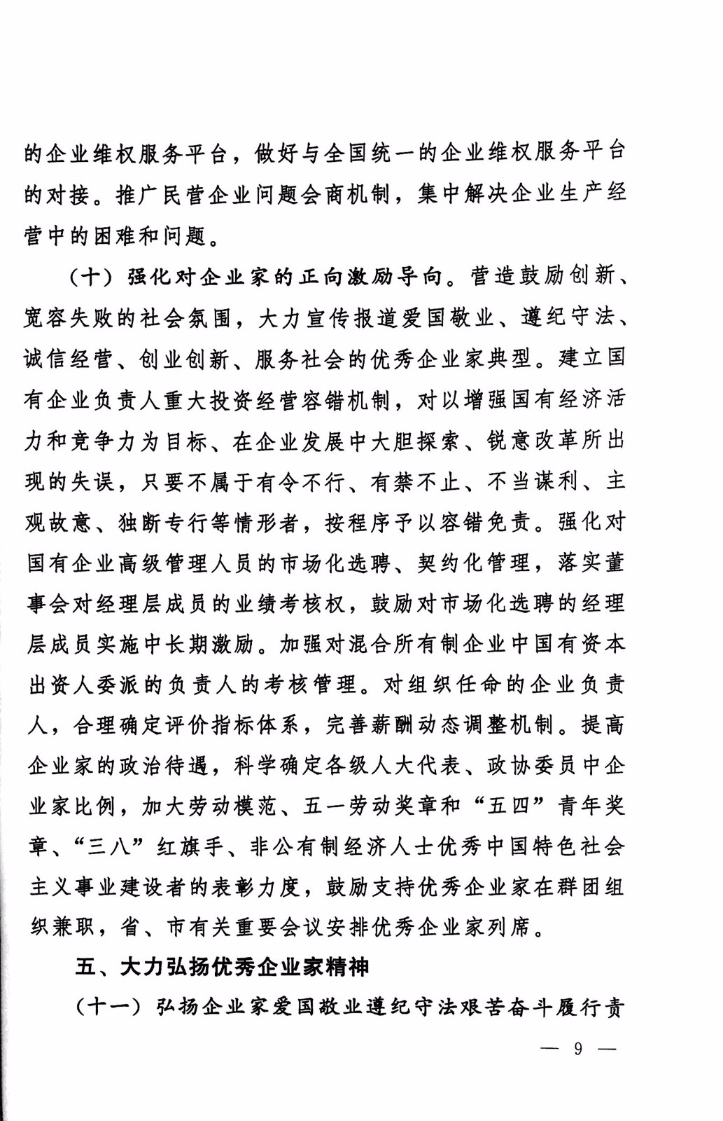 关于营造企业家健康成长环境弘扬优秀企业家精神更好发挥企业家作用的实施意见