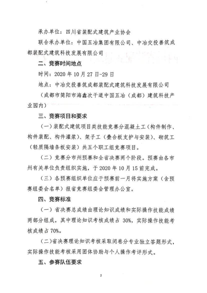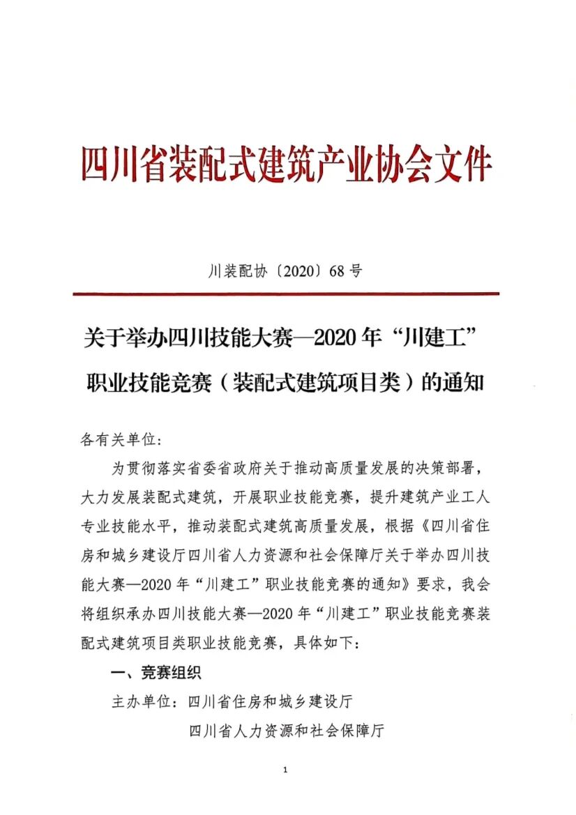 关于发布四川技能大赛—2020年“川建工”职业技能竞赛(装配式建筑项目类)的技术方案通知