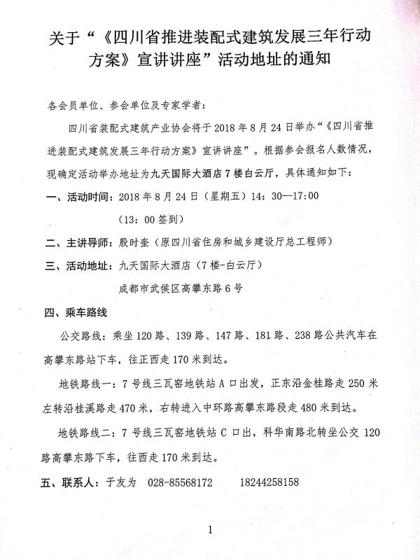 关于“《四川省推进装配式建筑发展三年行动方案》宣讲讲座”活动地址的通知