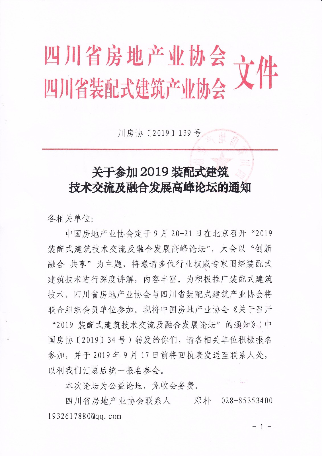 关于参加2019装配式建筑技术交流融合发展高峰论坛的通知.pd