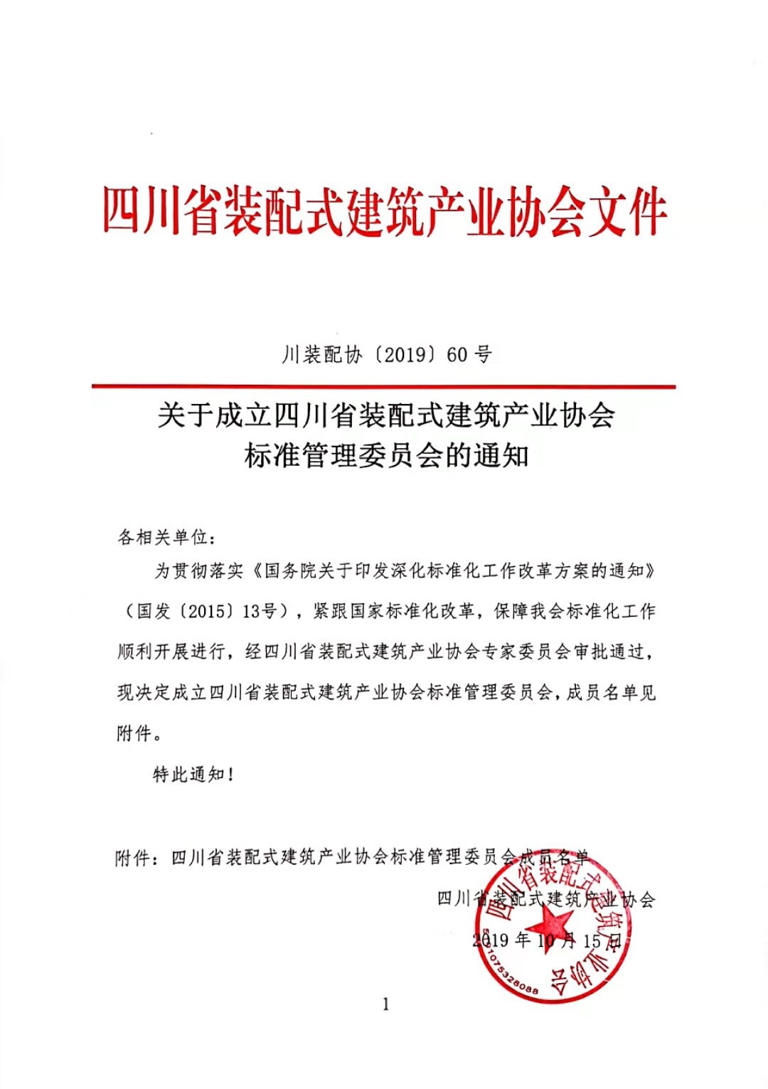 关于成立四川省装配式建筑产业协会标准管理委员会的通知