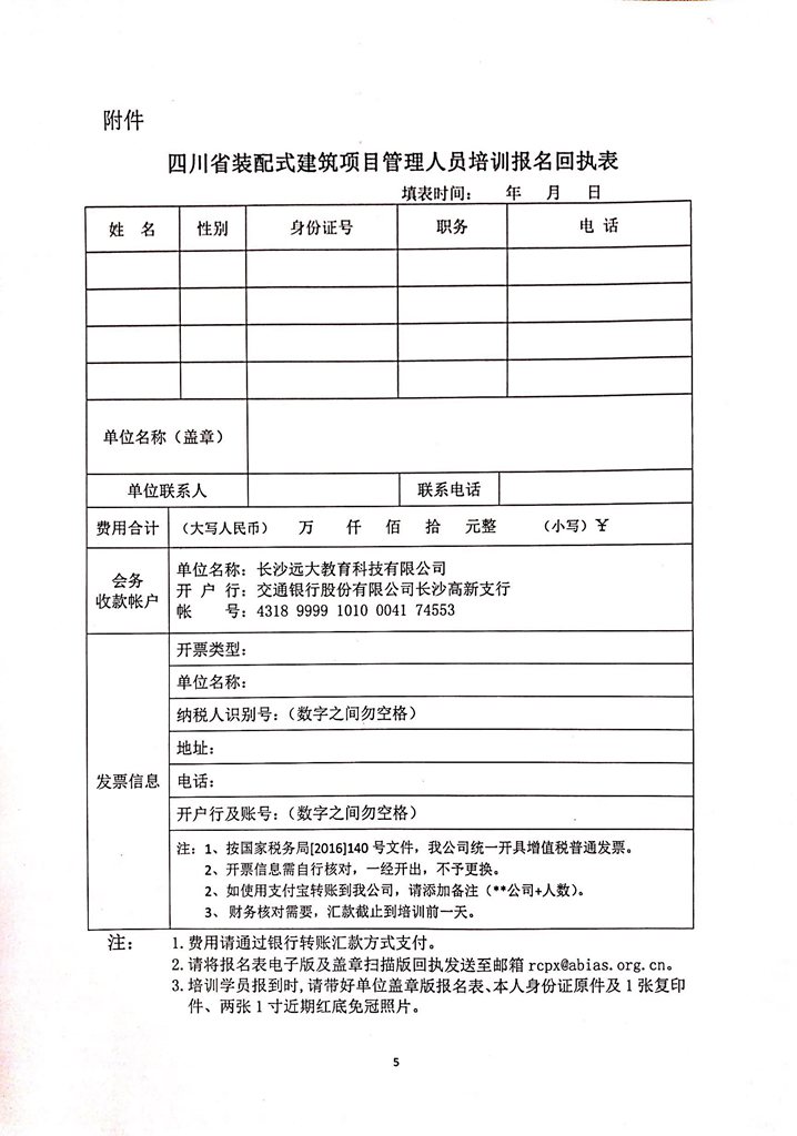 通知 | 关于举办四川省装配式建筑项目管理人员(第六期)培训班通知