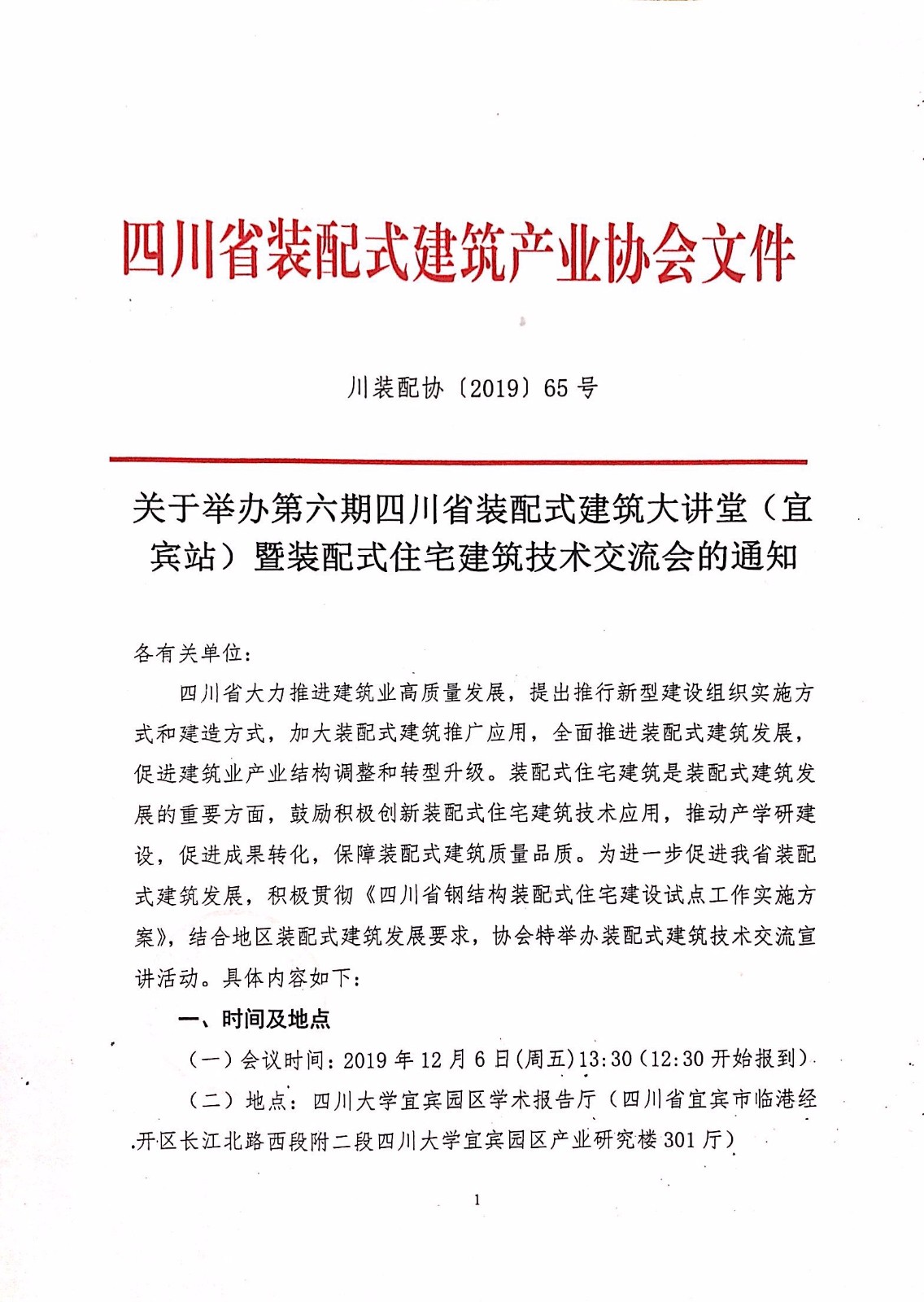 通知 | 关于举办第六期四川省装配式建筑大讲堂(宜宾站)暨装配式住宅建筑技术交流会的通知