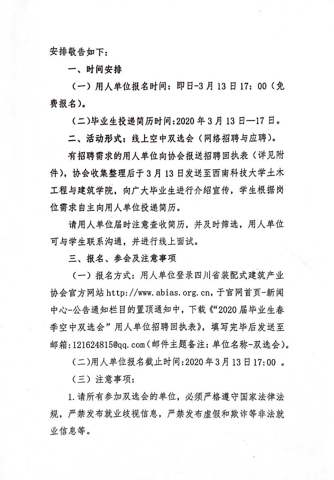 四川省装配式建筑产业协会、西南科技大学土木工程与建筑学院关于联合举办“2020届毕业生春季空中 双选会”的通知.pdf