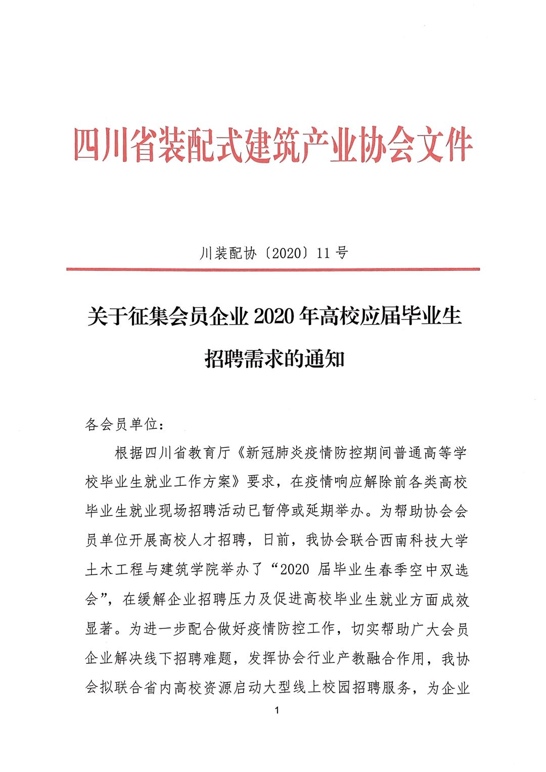关于征集会员企业2020年高校应届毕业生招聘需求的通知