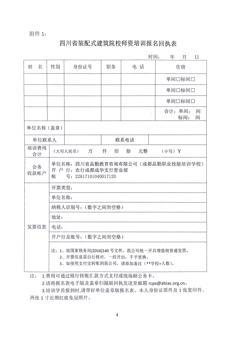 第一期四川省装配式建筑院校师资培训报名回执表.doc