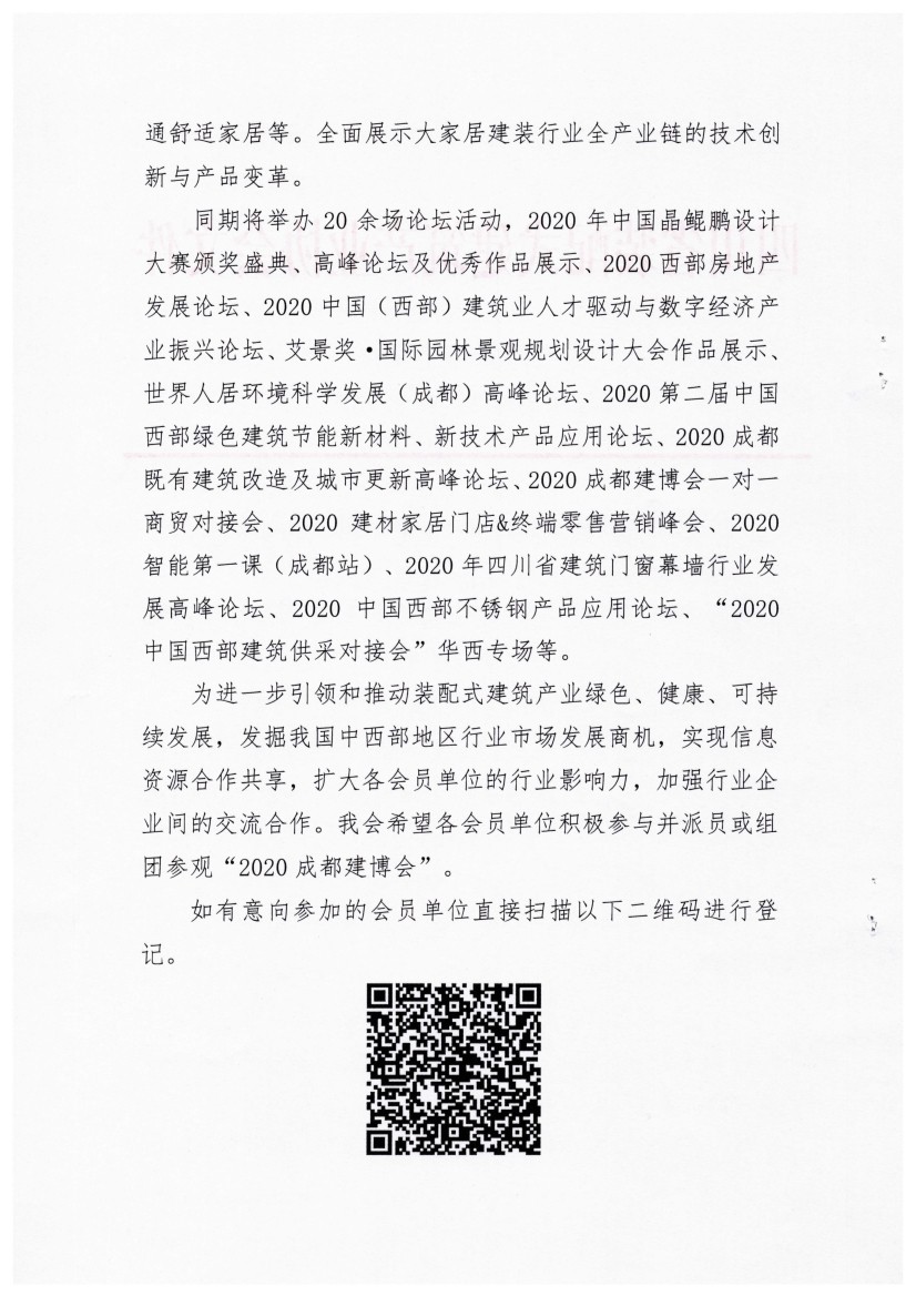 关于邀请参观2020第二十届成都建博会暨装配式建筑展览会的通知