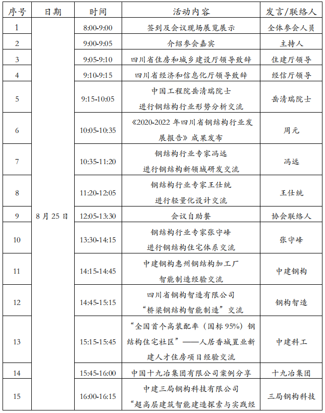 为贯彻落实《加快转变建筑业发展方式推动建筑强省建设工作方案的通知》(川建行规〔2022〕1号)要求,加强技术创新,加快企业转型,加大钢结构推广应用力度,提升钢结构行业发展质量,进一步推动四川省钢结构行业向标准化、数字化、智能化升级,四川省装配式建筑产业协会决定组织召开“2023年度四川省钢结构行业发展交流暨现场观摩会”。现有关事项通知如下。