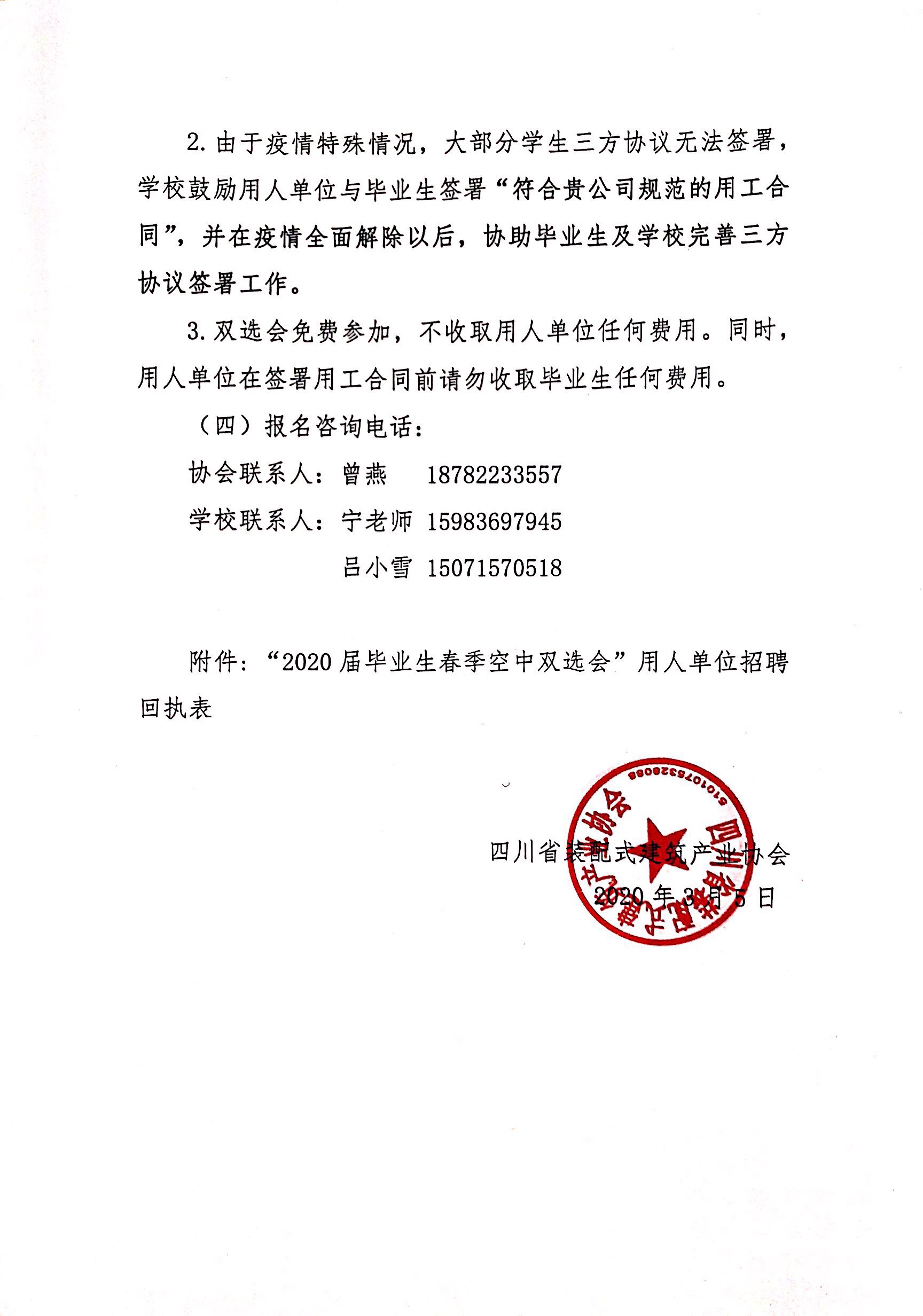 四川省装配式建筑产业协会、西南科技大学土木工程与建筑学院关于联合举办“2020届毕业生春季空中 双选会”的通知.pdf