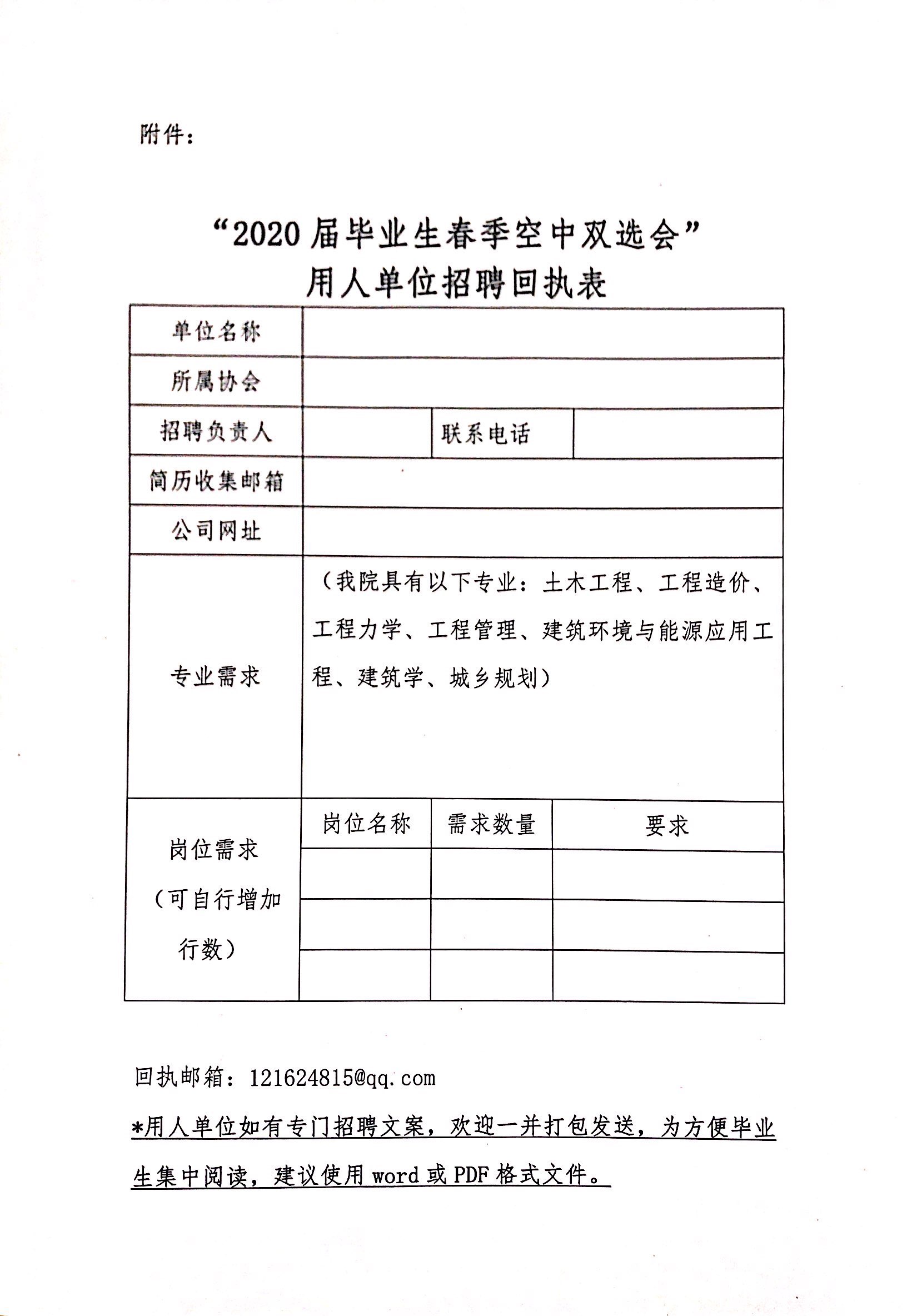 附件:“2020届毕业生春季空中双选会”用人单位招聘回执表.doc