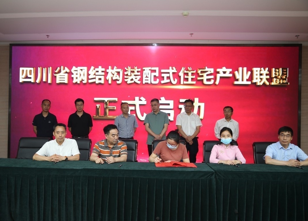四川省钢结构装配式住宅产业联盟是在四川省住建厅指导下,由中国五冶集团牵头发起,联合省内知名院校、设计院以及相关装配式建筑企业共同成立的,集产品设计研发、制造、装配为一体,目前已集聚设计院、知名院校、产业链上下游企业近30家。联盟以成都、绵阳、广安、宜宾、甘孜、凉山6个装配式住宅试点市(州)为依托,通过加速开展建设试点,构建我省新型钢结构装配式住宅产业生态圈,打造全国钢结构装配式住宅领域集科研开发、成果转化、人才培养和开放服务于一体的核心平台。