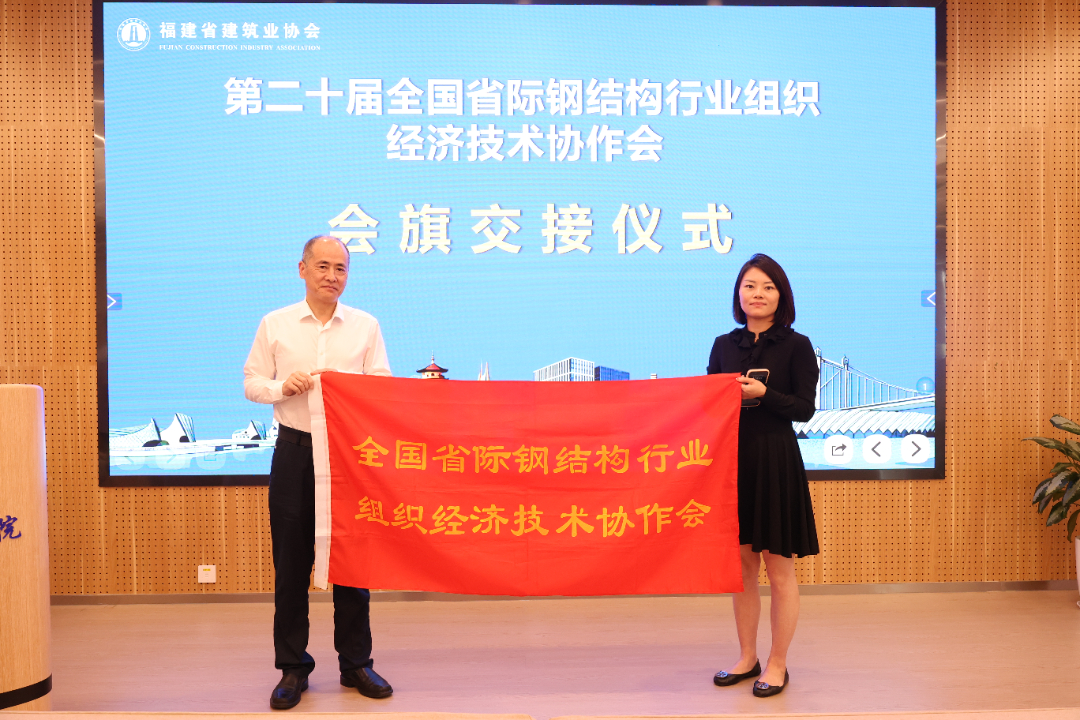 作为协作会的重要传统环节,会议审议并确定了下一届会议的承办地点。经全体与会代表一致推举,第二十一届全国省际钢结构行业组织经济技术协作会将于2026年在四川成都举办。在热烈掌声中,吕东琼秘书长从本届主办方福建省建筑业协会侯伟生会长手中庄重接过会旗,完成交接仪式,象征着行业协作精神薪火相传、生生不息。